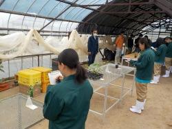 解答し終わった後、全員で答え合わせをしました。写真で見るのと実物とでは、生育具合に違いがあることもあって、思いのほか不正解の生徒が何人もいてびっくりです。折に触れて、栽培している野菜の名前と科名を確認しなければと感じました。卒業までには、苗を見れば何の野菜かがすぐわかるようになってほしいです。