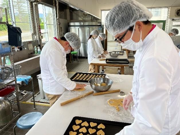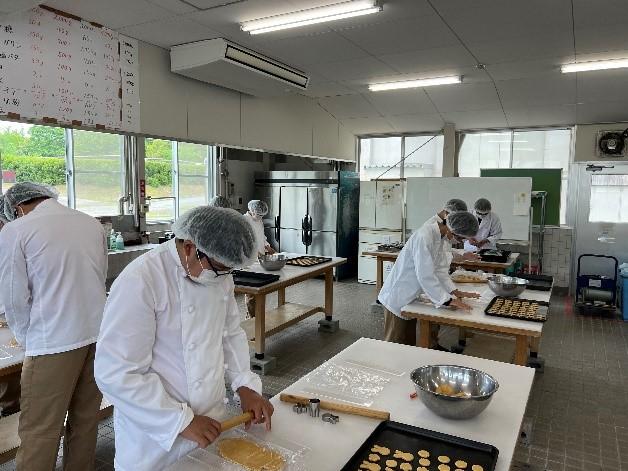 農業科目「食品製造」で3回目の実習を行いました。実習内容は本校の人気商品であるクッキーの塩きな