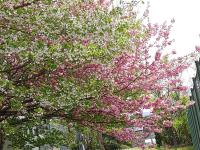登下校時、八重桜の並木の美しいさまに目を留めてくださいね。