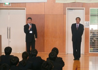 初めに川内学校長から、この4月より毎週水曜日に本校にお越しになる、生徒指導サポーターの和泉さんの紹介があり、和泉さんからは、本校生徒に対して抱いている印象と期待感が語られました。