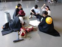 劇団キンダースペースさんによる特別授業も今日が最終日。本日は2年生の活動の様子をご紹介します。2年生は「もしも〇〇が〇〇だったら」というテーマで、昔話をモチーフに自分たちのアレンジを加えて新たなストーリーとして展開させていくもののようです。あるグループは「桃太郎」もう一つのグループは「シンデレラ」を題材にして創作中です。どんな話の展開になるのか今日の本番が楽しみです。今日の発表の様子は近日中にご報告いたします。