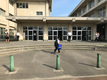2018年7月21日 10時50分 7月17日 1学期最後となる能美市ふれあい挨拶デーでした。朝から強い日差しの暑い日でしたが、多くのPTA役員が生徒玄関前での挨拶運動に参加しました。