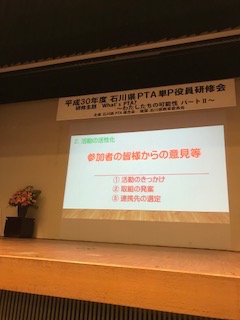 2018年7月1日 23時01分6月29日、14時より石川県PTA単P役員研修会に会長 泉と副会長 杉田の2名が出席してきました。