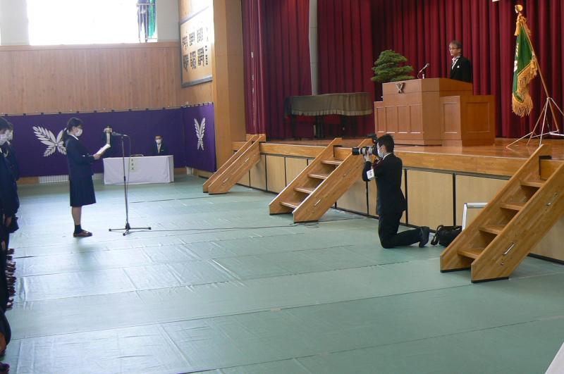 山越学校長が「3年間の中で、一つのことに全力で頑張って打ち込んだ瞬間がある!そんな経験をしてほしい。」と式辞を述べました。