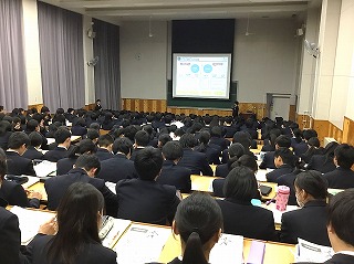 タイミングよく11月に受験した模試の結果も生徒に配布されたところで、模試の結果をどのように活用していくのか、結果の見方やこれから取り組む課題についても具体的に説明していただきました。
