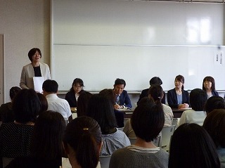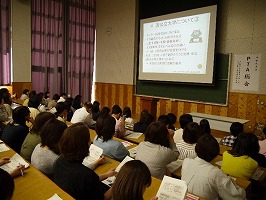 不審者対応については、生活安全課の茶谷さんより、VTRを用いて護身術を伝授していただきました。特に、力の弱い女性でも対処できる方法を、デモンストレーション形式にて見せていただき、大変分かりやすい講話になりました。
