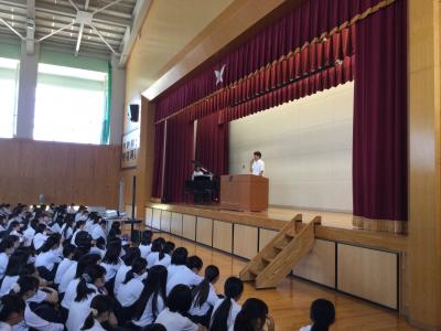 また、9月30日に行われる本校50周年記念式典に触れ、生徒たちが本校の伝統と誇りを受け継ぐ在校生として、頑張って欲しいと述べられました。