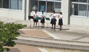 7月27日(木)、中学生体験入学を実施しました。石川県内53校の中学生の参加があり、3部体制で実施しました。中学生は、本校を紹介した動画を視聴した後、本校生徒による西校クイズに答え、本校の生徒との交流を楽しんでいました。その後は、興味のある部を見学しました。また、本校の中庭で、吹奏楽部、軽音楽同好会、ダンス同好会の発表を見て、西高祭の雰囲気も少しだけ味わってもらえたのではないでしょうか?