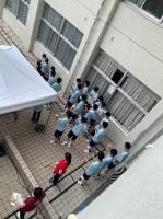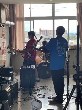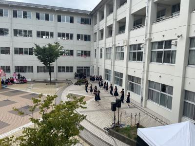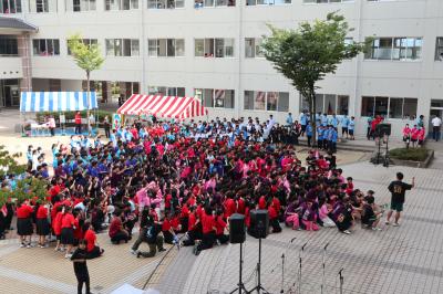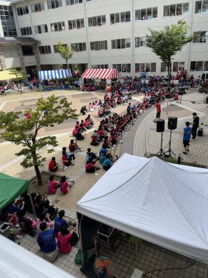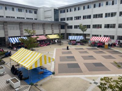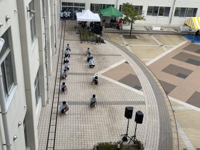 中庭ステージでは、2年生のクラスごとのステージ発表や、有志のバンド、そして教員バンドと大いに盛り上がりました。教員バンドの先生方は、生徒から拍手声援をもらい、学校全体が一つになったと感じる瞬間でした。