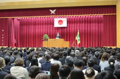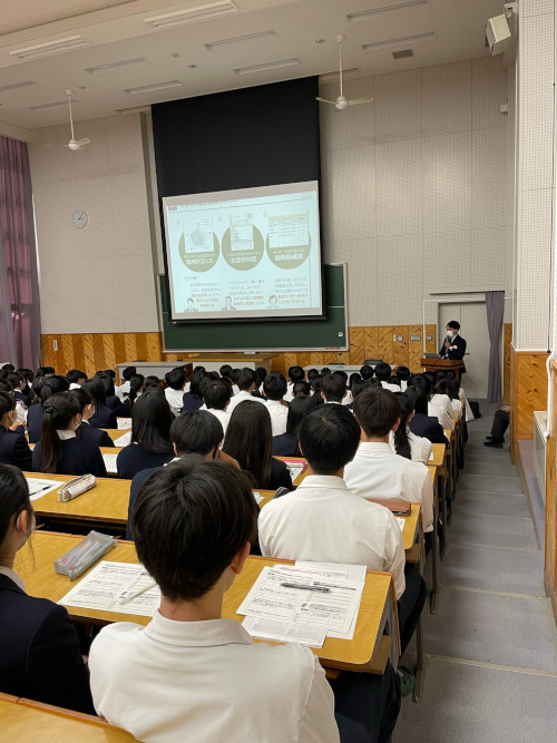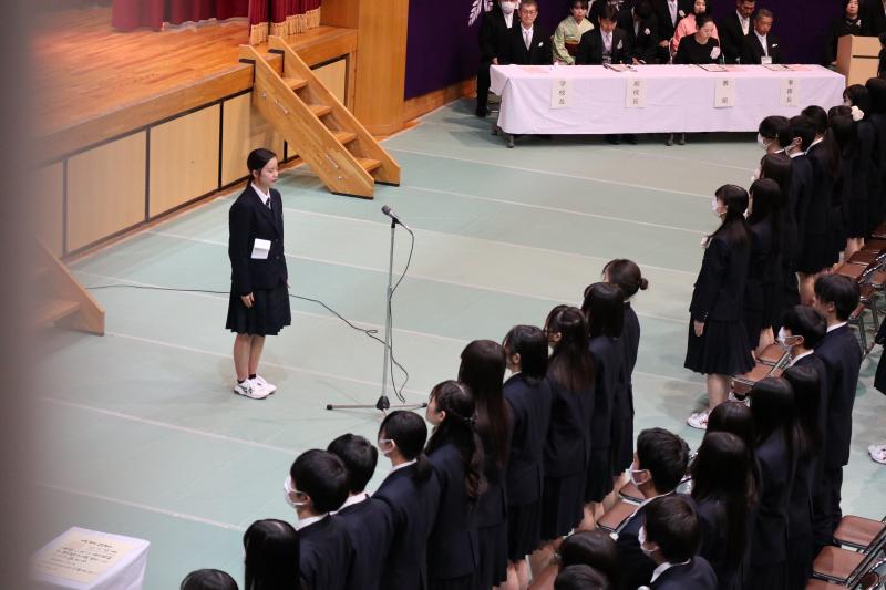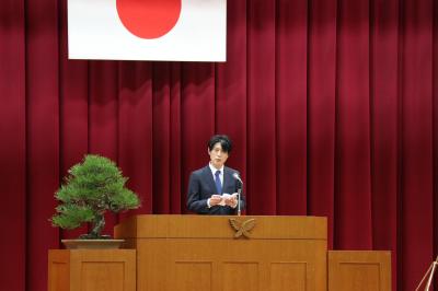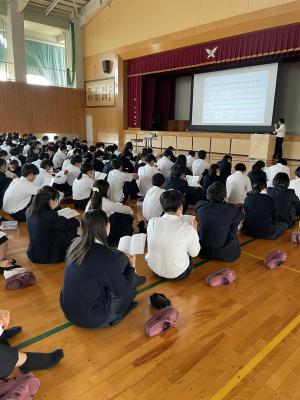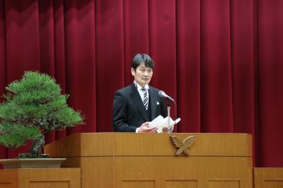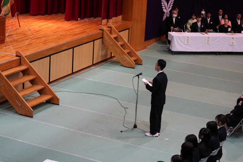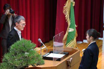 当日は、14Hの永田航大さんが代表で委嘱状を、また、18Hの高田恵吾さんが代表で1年生の自転車通学者全員分のワイヤー錠を受け取りました。