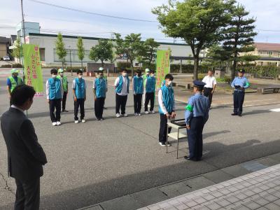 2023年6月26日 16時00分6月21日(水)朝、本校正門前で、ロック隊任命委嘱式が行われました。ロック隊とは、自転車鍵かけを生徒に呼びかけることを活動目的として、1年生男子公安委員9名で結成され、金沢西警察署生活安全課より委嘱を受けました。