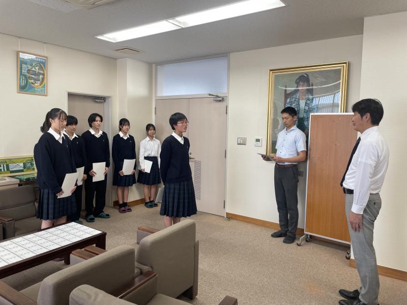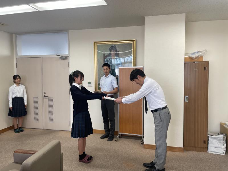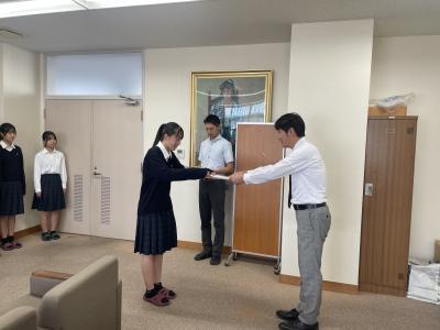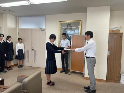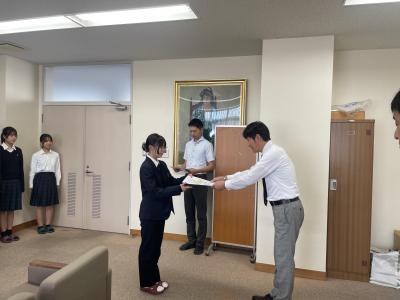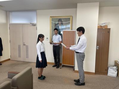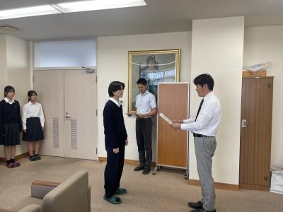 2024年10月19日 07時24分後期の生徒会役員認証式が校長室で行われました。