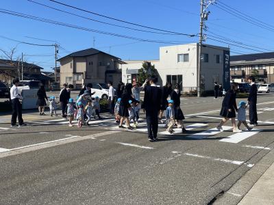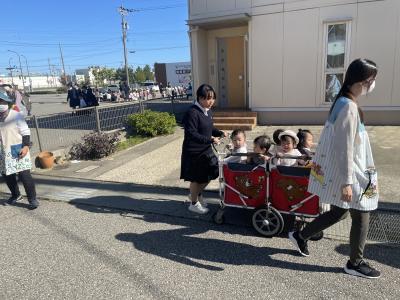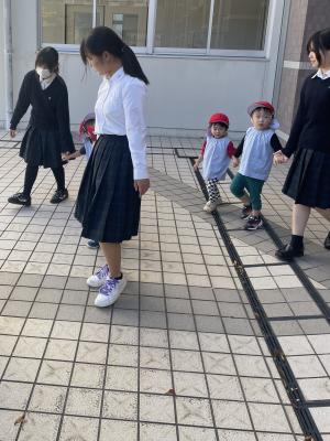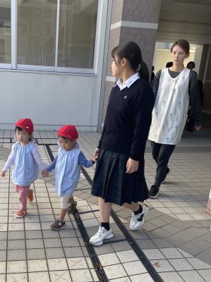 わらべ保育園の避難訓練での園児誘導補助
