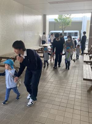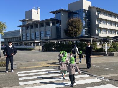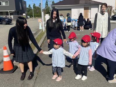 2024年10月22日 07時04分近隣のわらべ保育園で避難訓練がありました。わらべ保育園には、インターンシップ等で毎年お世話になっています。本校中庭が避難場所だということで、本校1年40人が避難のお手伝いをしました。