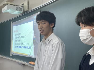 2024年11月2日 11時02分今日は学校公開日で、2年生が総合的な探究の時間発表を行いました。