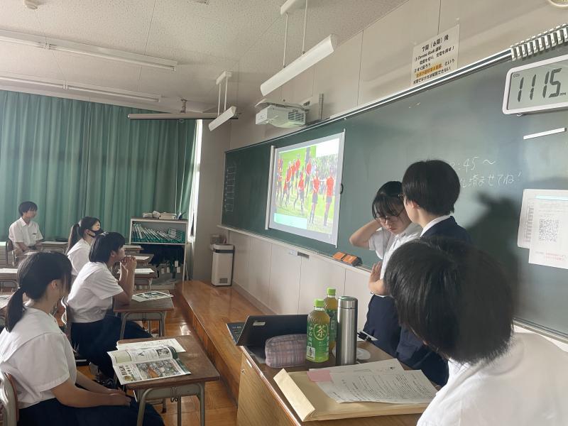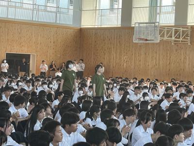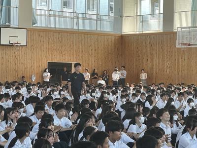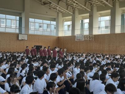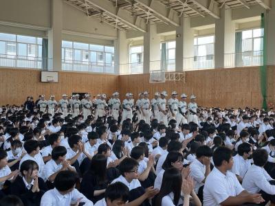 松本副校長の激励のあと、生徒会長、応援団長からの応援の言葉