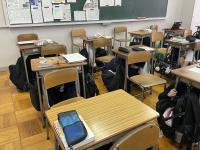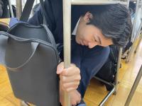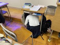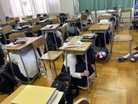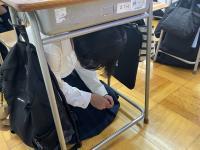 地震発生後速やかに机の下に隠れるなど行いました。