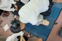 6月28日(金)期末試験最終日の午後,救命救急講習会を行いました。本格的な夏に向かい,何か事故があった際にも迅速に対応できるよう,毎年この時期に開催しています。今年も日本赤十字社石川県支部様よりお二方の講師をお招きし,各部・各ホーム保健委員の代表者約70名を対象に実施しました。生徒たちは真剣にまた活発に心肺蘇生法・AEDの活用法の実技に取り組み,非常に有意義な時間となりました。