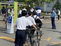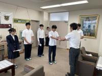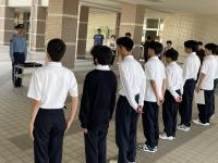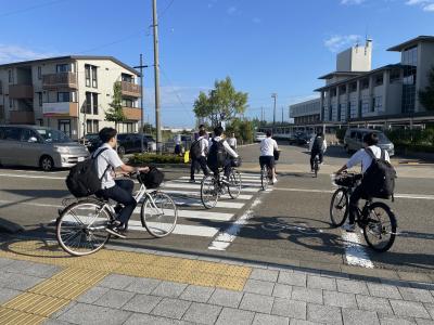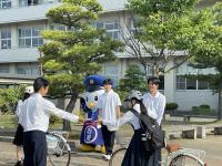 6月12日(水)朝、本校正門前で、ロック隊任命委嘱式が行われました。 自転車鍵かけを生徒に呼びかけることを活動目的として、金沢西警察署生活安全課より委嘱を受けました。生徒代表が委嘱状を、また、ワイヤー錠を受け取りました。