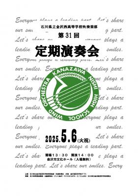 ★リマインド★【吹奏楽部】第31回石川県立金沢西高等学校吹奏楽部定期演奏会