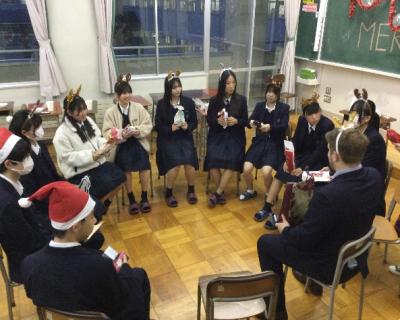 It was fun to share our Christmas culture with the students. There are many Chiristmas traditions in America and the U.K., so we are glad we could give the students a chance to learn abut them.   ALT Holly Moore, Josh Bowers