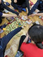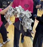 大きなラッピング袋に新聞紙を入れて、かさ増しして渡した1年生もいました