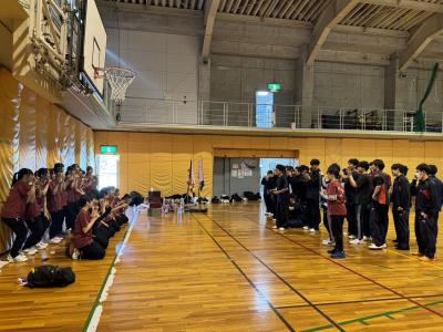 出発前、3年生最後の練習では1・2年生からの激励がありました。