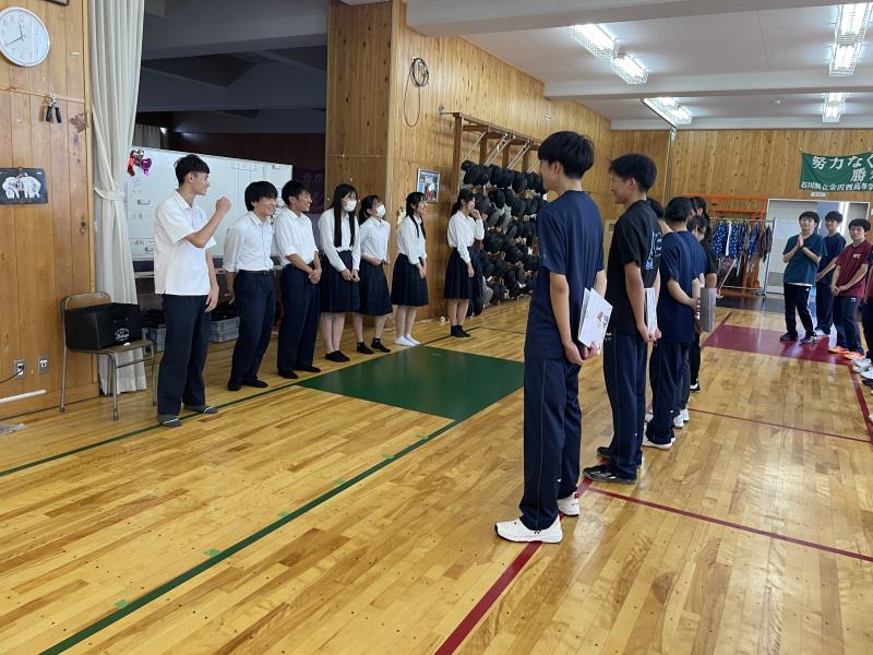 総体前日に1・2年生から、3年生に対して激励を行いました。