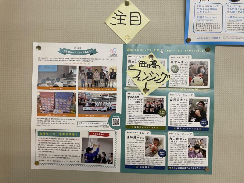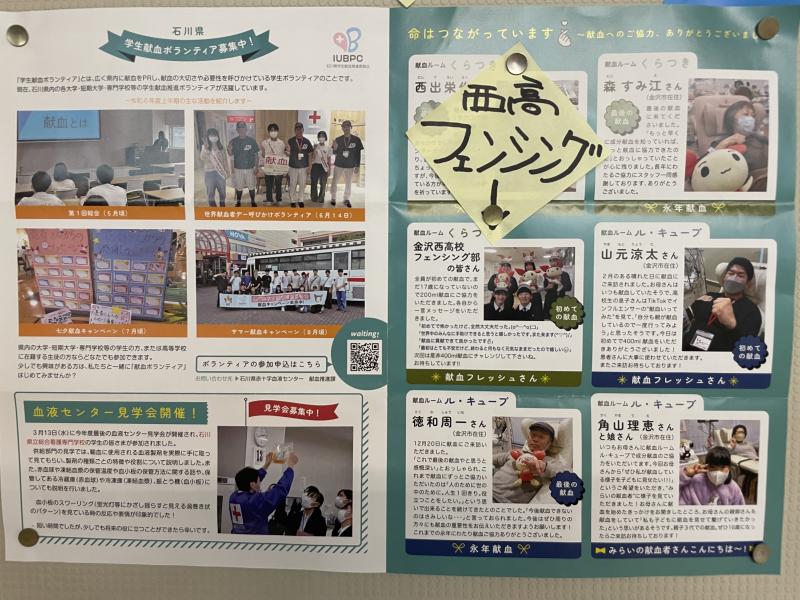 日本赤十字社の石川県赤十字血液センターのパンフレットに、フェンシング部の3年生が掲載されています!