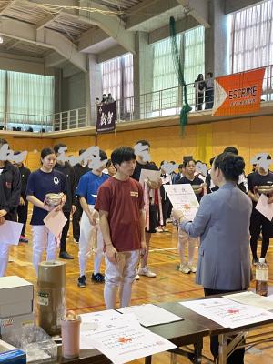 女子サーブルが選抜大会に出場するため、激励費を頂きました。