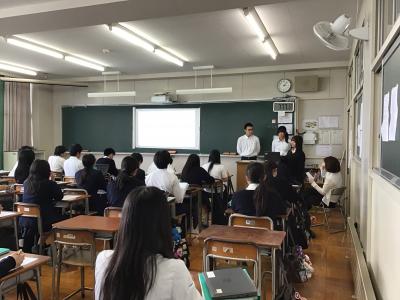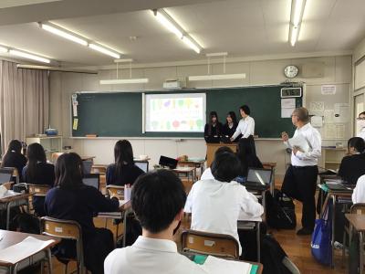 6月4日(水)7限、協力していただく企業の担当者の方々をお迎えして、1年生が取り組む課題を説明していただきました。