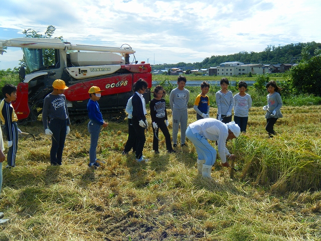 9月20日(金)の5,6限目に5年生が稲刈りをしました。