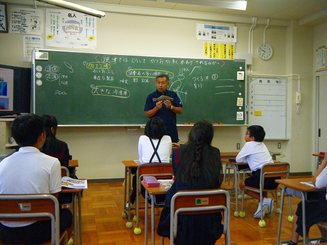 10月4日(金)に石川県に2人しかいないお魚マイスターの方に来ていただき、内灘の漁業について教えていただきました。