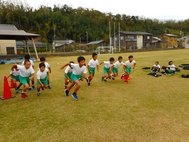 11月24日のマラソン大会に向けて、1人1人が目標を立てて、 1~3年生は1周135m、4~6年生は1周250mのコースを走っています。