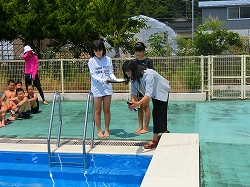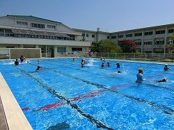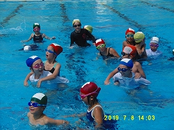 7月8日(月)の5限目にプール集会を行いました。水中鬼ごっこや浮島リレー、流れるプールを行いました。どの子もとても楽しそうに活動していました。