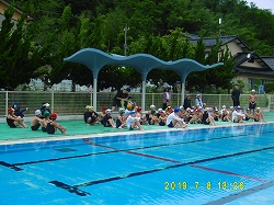 プールのルールを守ったり準備運動をしっかりすることを確認した後に、事故なく水泳ができるように安全祈願をしました。