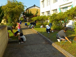 8月25日(日)に親子奉仕活動で運動場と学校正面の除草作業を行いました。