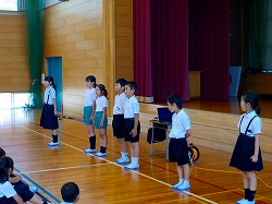 全校集会での振り返りの様子
