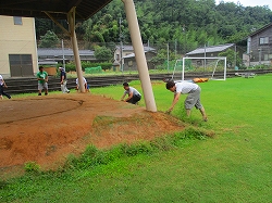 8月4日(日)の相撲大会に向けて、7月28日(日)に土俵作りを行いました。