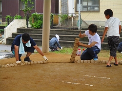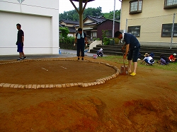 保護者さんの協力で、立派な土俵ができました。