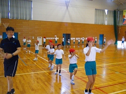 初めての1年生は先生の動きや高学年の動きを見ながら、一生懸命練習していました。