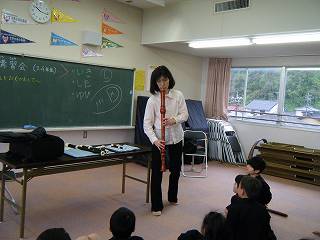 初めてのリコーダーにわくわくしている3年生と、もっと上手に演奏できるようになりたい4年生にとって、とても楽しく有意義な時間でした。「いき」「した」「ゆび」の3つの使い方のポイントをわかりやすく指導していただいた後、いろいろな大きさのリコーダーで、その音色に合った曲を何曲も演奏していただきました。曲ごとに大きな拍手と歓声でいっぱいでした。