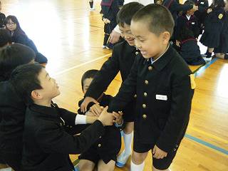 1年生と全校のみんなが仲良くなれるようにと企画委員会のみんなが、楽しいプログラムを考えてくれました。6年生に手を引かれて入場してきた1年生。はじめは、緊張していた様子でしたが、仲間集めゲームや王様じゃんけんなど楽しいゲームをして、いろんな人と仲良しになり、笑顔いっぱいでした。