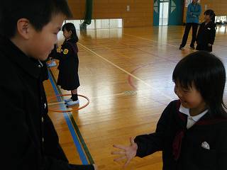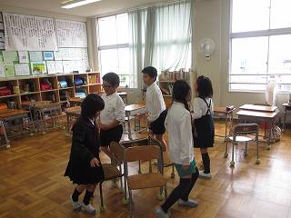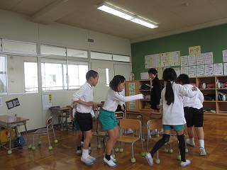 縦割り班の子ども達で、ハンカチ落とし、新聞じゃんけん、椅子取りゲームなどを