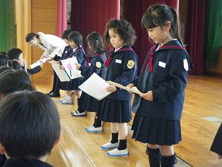 おめでとう。みんなのチームワークで西荒屋小学校を引っ張っていって下さいね。