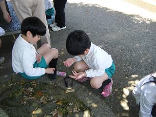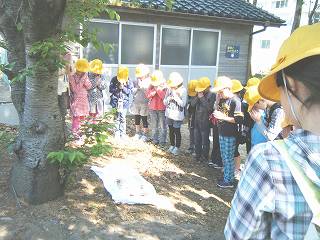 遠足に出発する前に、3、4年生みんなで手を合わせて冥福を祈りました。