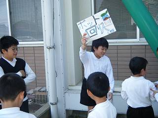 国語の時間、グループに分かれて、「白いぼうし」の音読をしています。