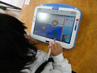 クリック、ダブルクリック、ドラッグを習った後で、算数の問題やぬりえをしました。
