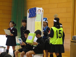 にこにこ集会では、保健委員会が劇でゲームやインターネットが体にどのような