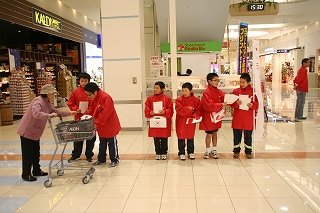 子供達は募金の呼びかけを大きな声で頑張りました。